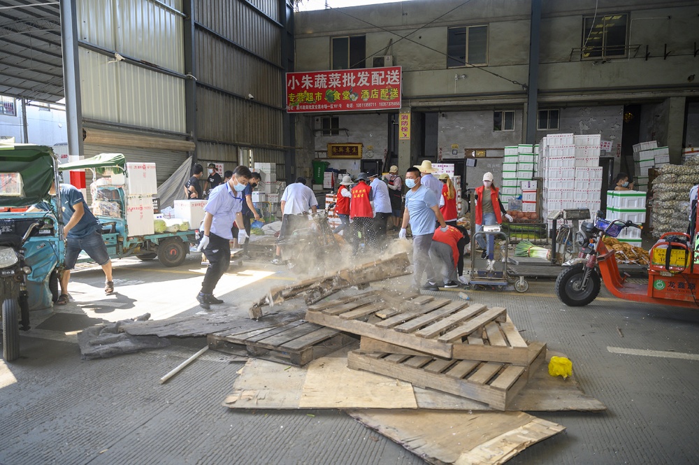 難點重點先再作整治:28日下午2時至18時,黨員青年突擊隊員和員工們用4個小時開展“清積物、整貨場”大行動,將市場1-4區(qū)所有攤位內(nèi)部衛(wèi)生難點問題作了一次徹底大清理、對貨物墊倉板底下的垃圾雜物作徹底清倉、全部木制墊倉板作清除,為后續(xù)將進行的攤位墻面刷涂和整體更新墊倉板作好準備。市場遷入現(xiàn)址已近十八年有余,時間長致房屋設施相對陳舊,通過本次創(chuàng)建迎檢對現(xiàn)場環(huán)境面貌加以改善,進一步構(gòu)建市場良好秩序。