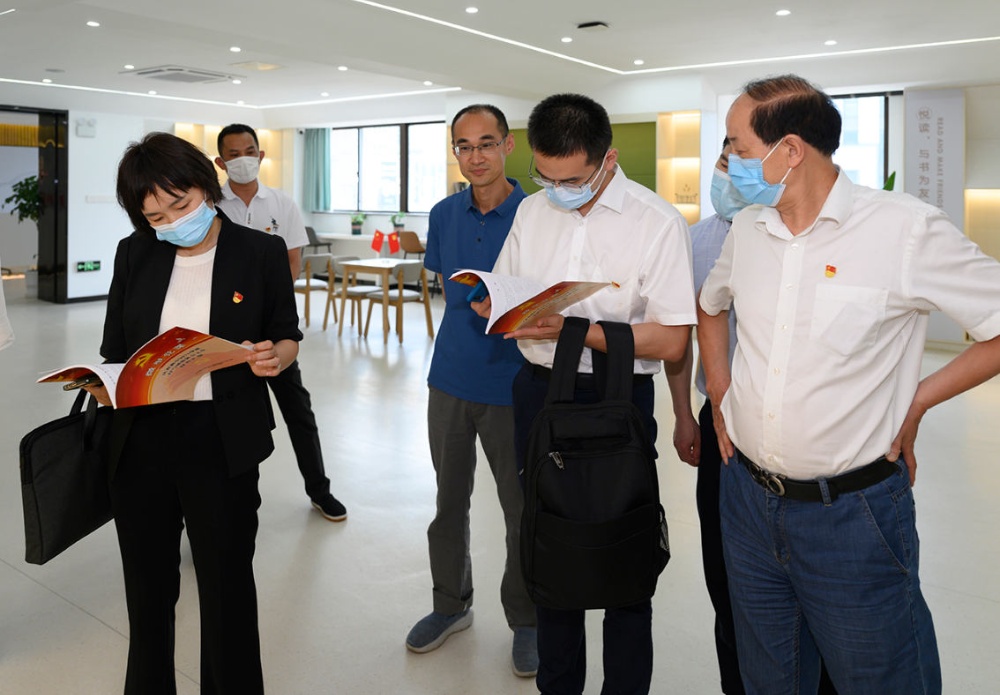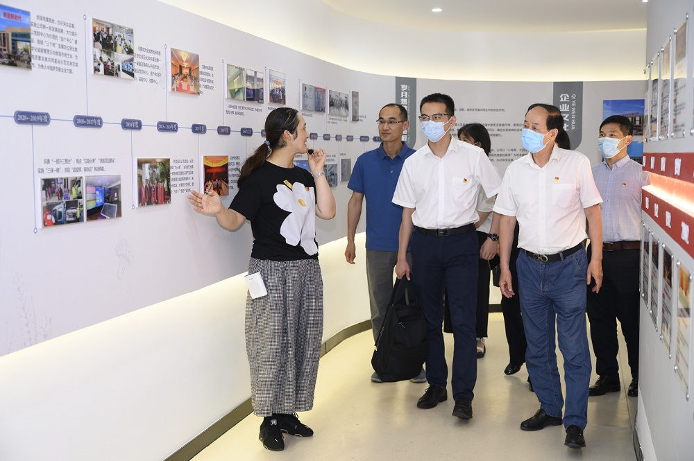 指導(dǎo)檢查組領(lǐng)導(dǎo)一行參觀公司新建成的黨群服務(wù)中心、食品安全檢驗(yàn)檢測(cè)中心,不時(shí)駐足并詢問(wèn)公司黨建歷史和企業(yè)發(fā)展歷程等。