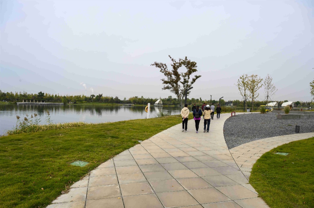 整個公園以自然生態(tài)景觀為依托,植入3萬余棵銀杏樹組成的銀杏林是它的最大特色,園內(nèi)利用豐富的水資源,融合濃郁的當代文化,配套打造了美術(shù)館、水鄉(xiāng)民宿等特色項目,融自然復育、藝術(shù)展覽、文化拾遺、樂知體驗等于一體。園內(nèi)飼養(yǎng)的羊駝、梅花鹿、黑天鵝等珍稀動物與人們親密互動,成群的野鴨和水鳥在湖面上歡快地嬉戲著,這是它們最愛的家園。