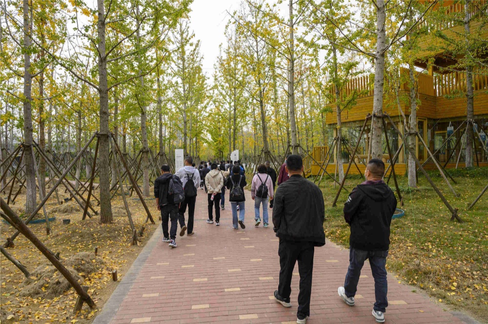 公園內(nèi)的植被已十分豐富,漫步于林間小路,樹蔭下的秋風里,銀杏林黃了,光影迷離,景色美不勝收。